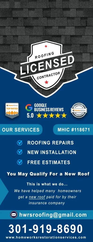 Whether you’re looking for a roofing service provider for your commercial building or residential home, or you’re in need of an entirely new roofing system, Homeworks Restoration Services is one of the largest and most respected roofing service providers in Maryland. Licensed and insured, Homeworks Restoration Services has grown quickly through repeat customers and referrals from the quality of work performed.